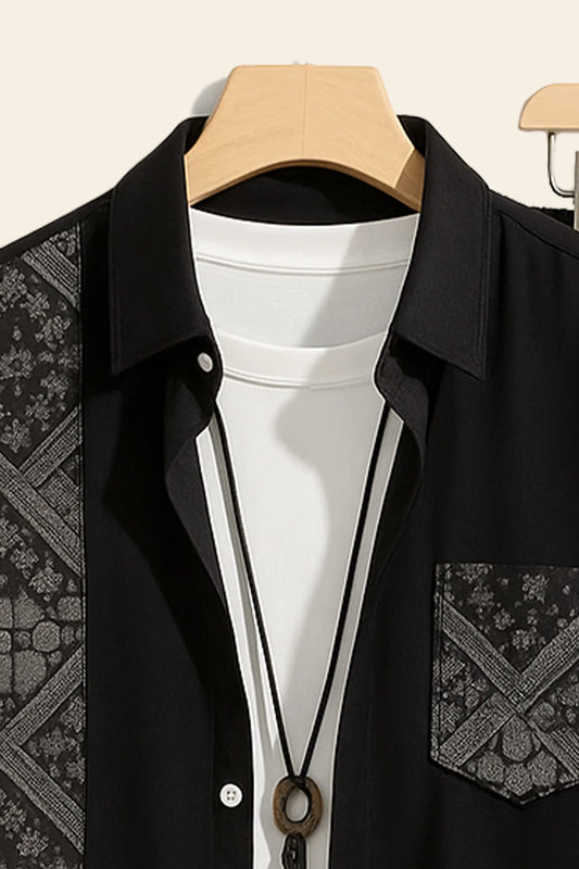 Black Border Men's Casual Half Sleeve Shirt and Full Pant Set - XPCRDF