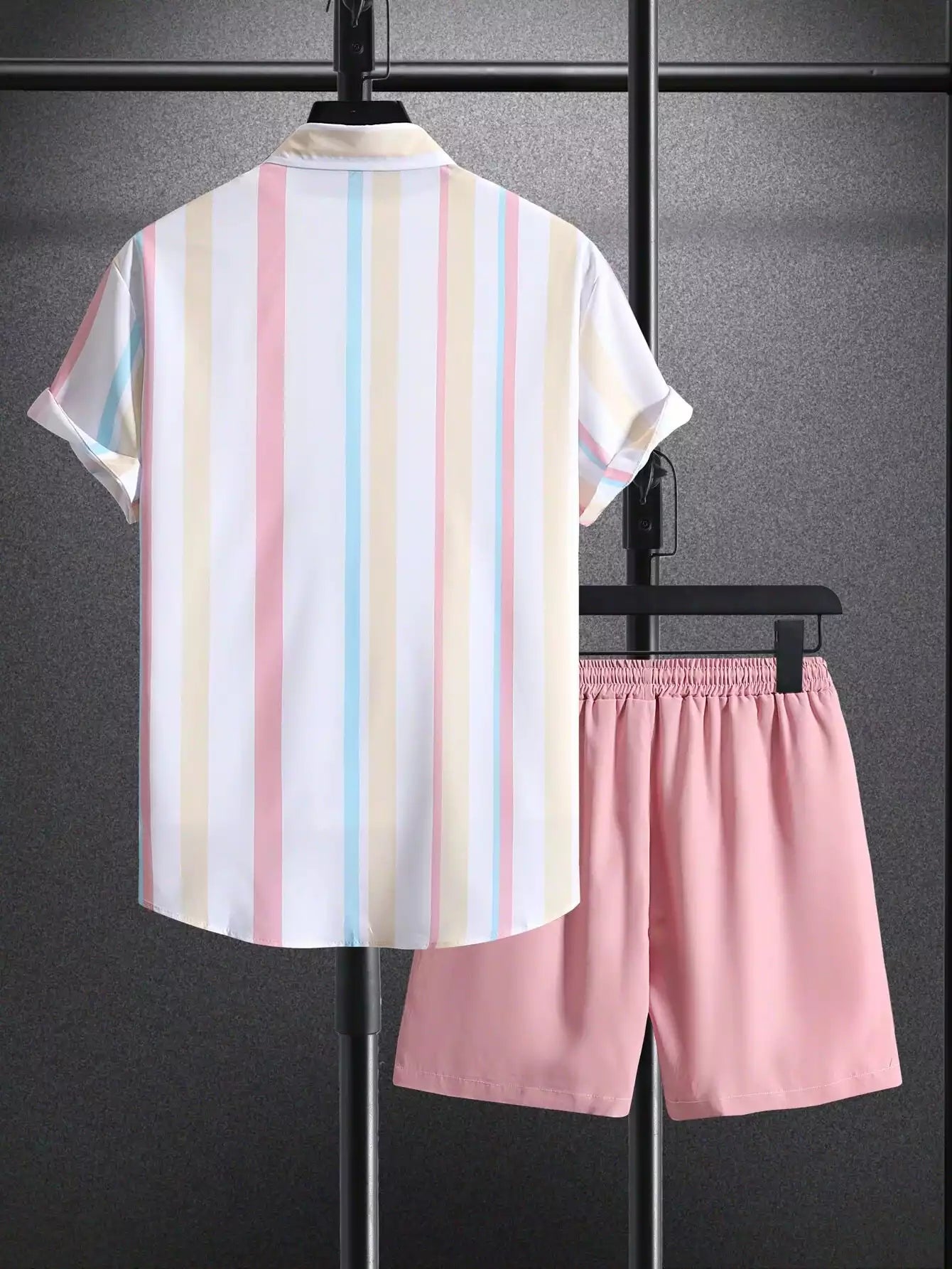 Peach Vertical Design Mens Half Sleeves Cords Cotton Material - XPCRDH
