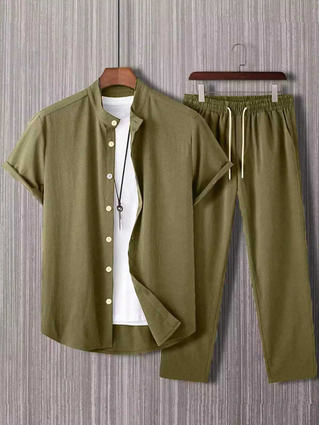 Plain Army Green Mens Full Set Trouser and Shirt Half Sleeves - XPCRDF
